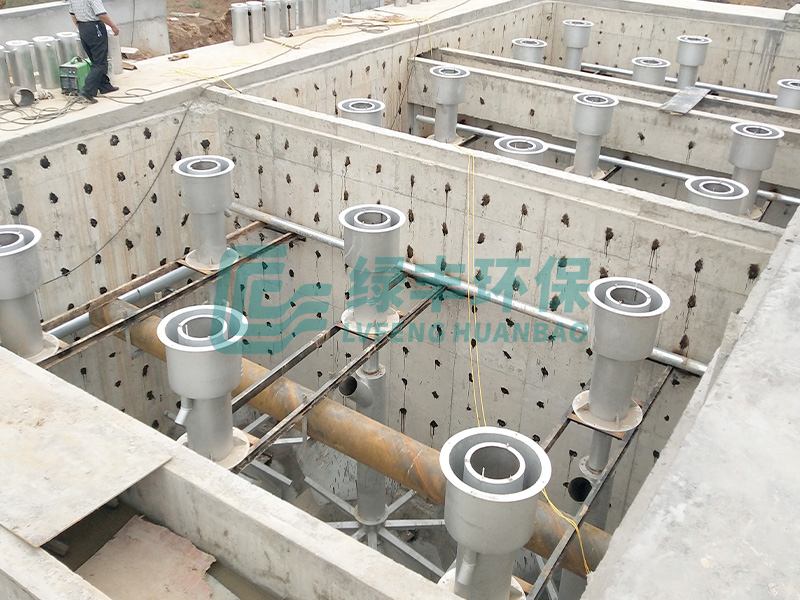 內部過濾單元包括進出水管、布水器、洗砂器、沖洗水出水管和空氣提升泵套管等。進出水管和沖洗水出水管都位于過濾單
